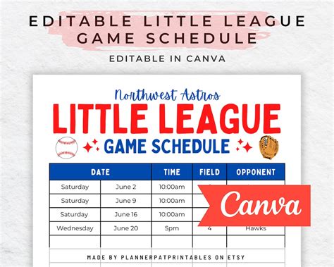Pdf Download Little league game schedule template [PDF] Download PDF